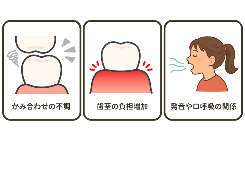 唇の位置や筋肉のバランスが崩れると、発音に影響したり、口呼吸の癖が強まることもあります。