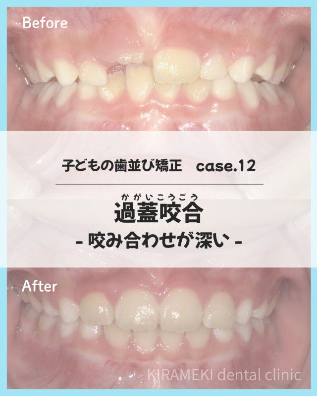 さらに、噛むときに過度な力が加わり歯が深くかぶさってしまうことも原因の一つとして考えられるため、舌や口まわりの筋肉を整えるMFT(口腔筋機能療法)を取り入れることで、噛む力(咬合力)のかかり方を適切にし、過蓋咬合の改善につなげました。