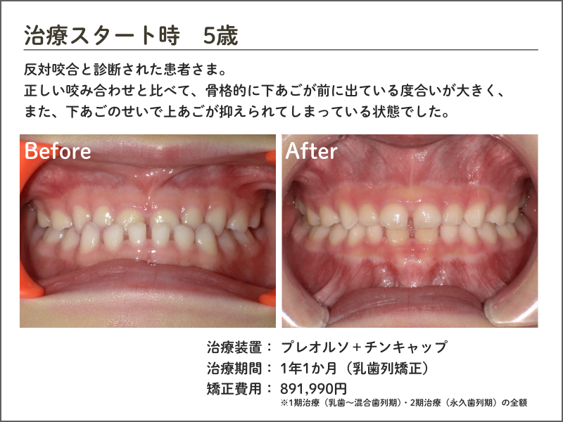 3歳ごろまでの顎の成長期においては、この指押しトレーニングと生活習慣の見直しによって、実際に反対咬合の症状が改善されるケースも少なくありません。