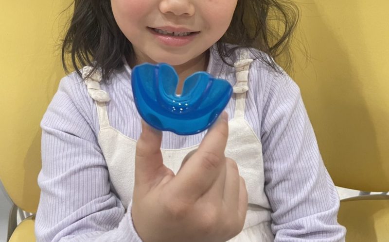 取り外しが可能な上下一体型のマウスピース型装置で、日中1時間と就寝時に装着することで日常生活への負担が少なく、また痛みも少なく、小さい年齢のお子さんでも自身で脱着できるのが特徴です。