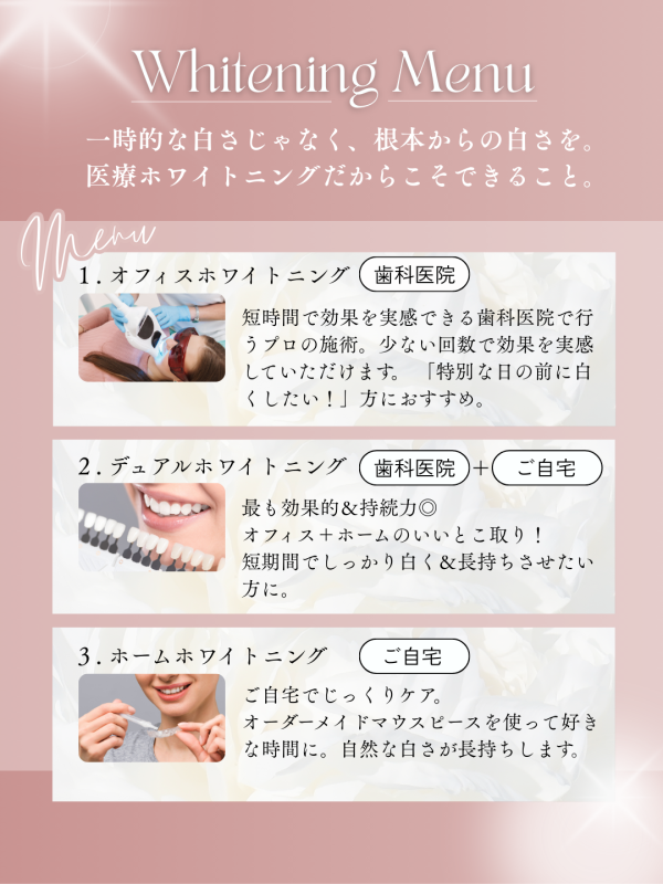 今回はその違いと、歯科医院で行う医療ホワイトニングのおすすめポイントについて、わかりやすく解説いたします。